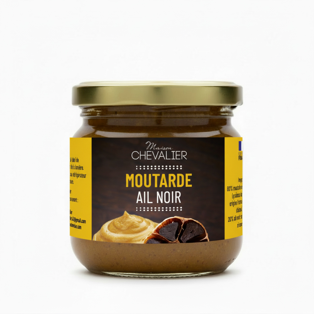 La moutarde à l’ail noir : l’explosion de saveurs en un condiment Notre moutarde à l’ail noir est une création unique qui marie la force de la moutarde de Dijon et la richesse umami de notre ail noir artisanal. Ce condiment audacieux apporte une touche puissante et gourmande à vos plats, pour des saveurs inoubliables.